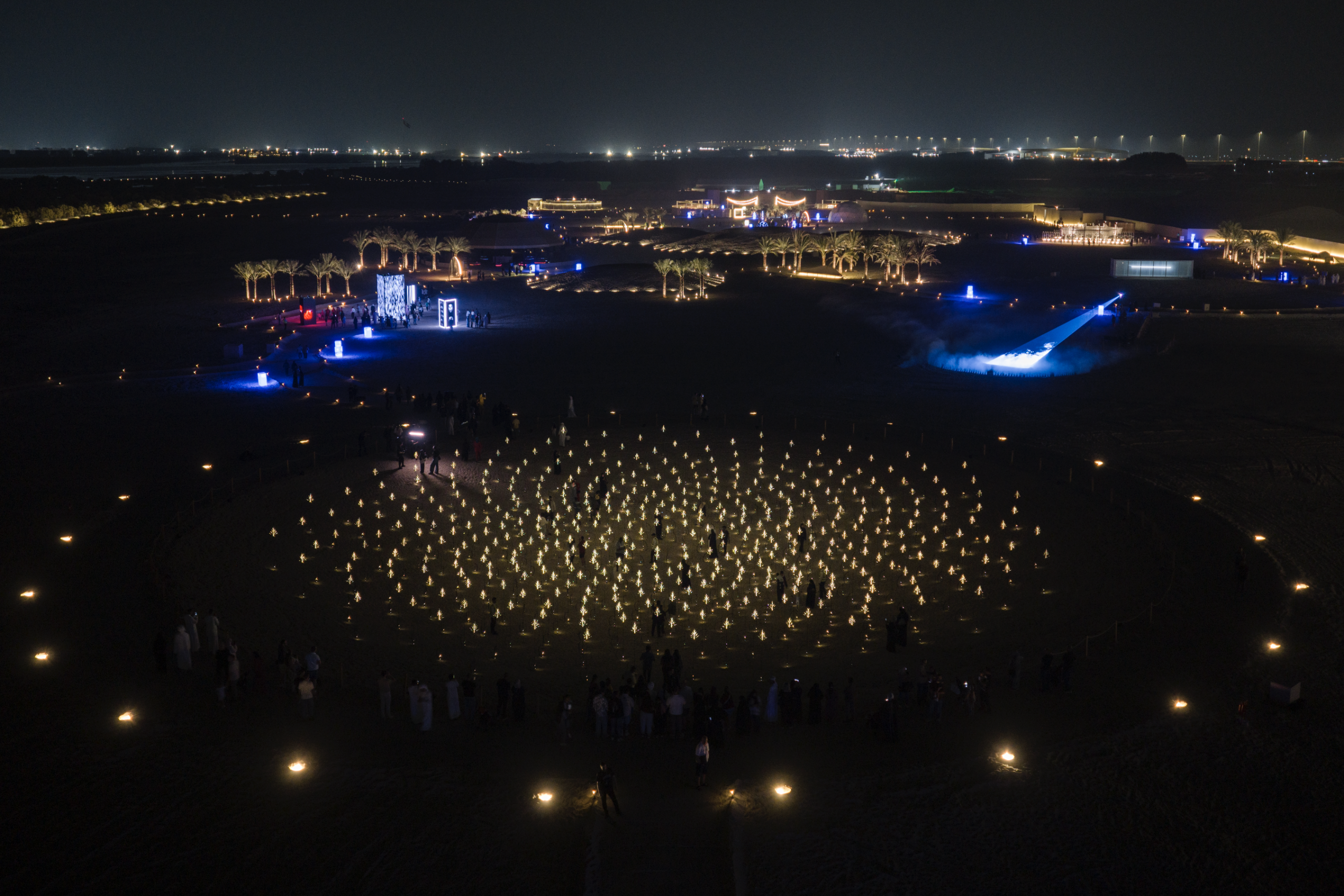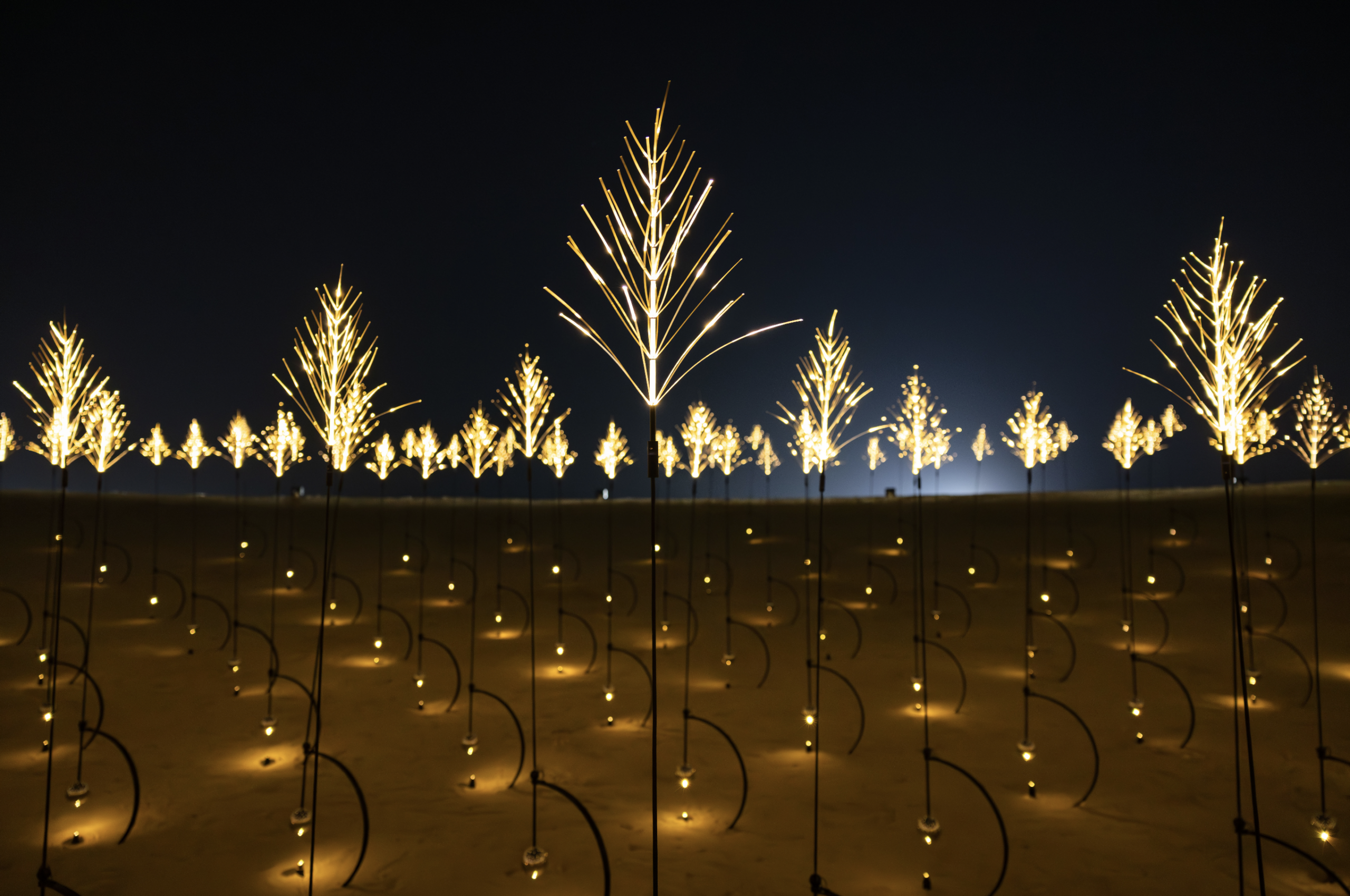 Whispers (2025), outdoor kinetic/light installation, diameter 50m